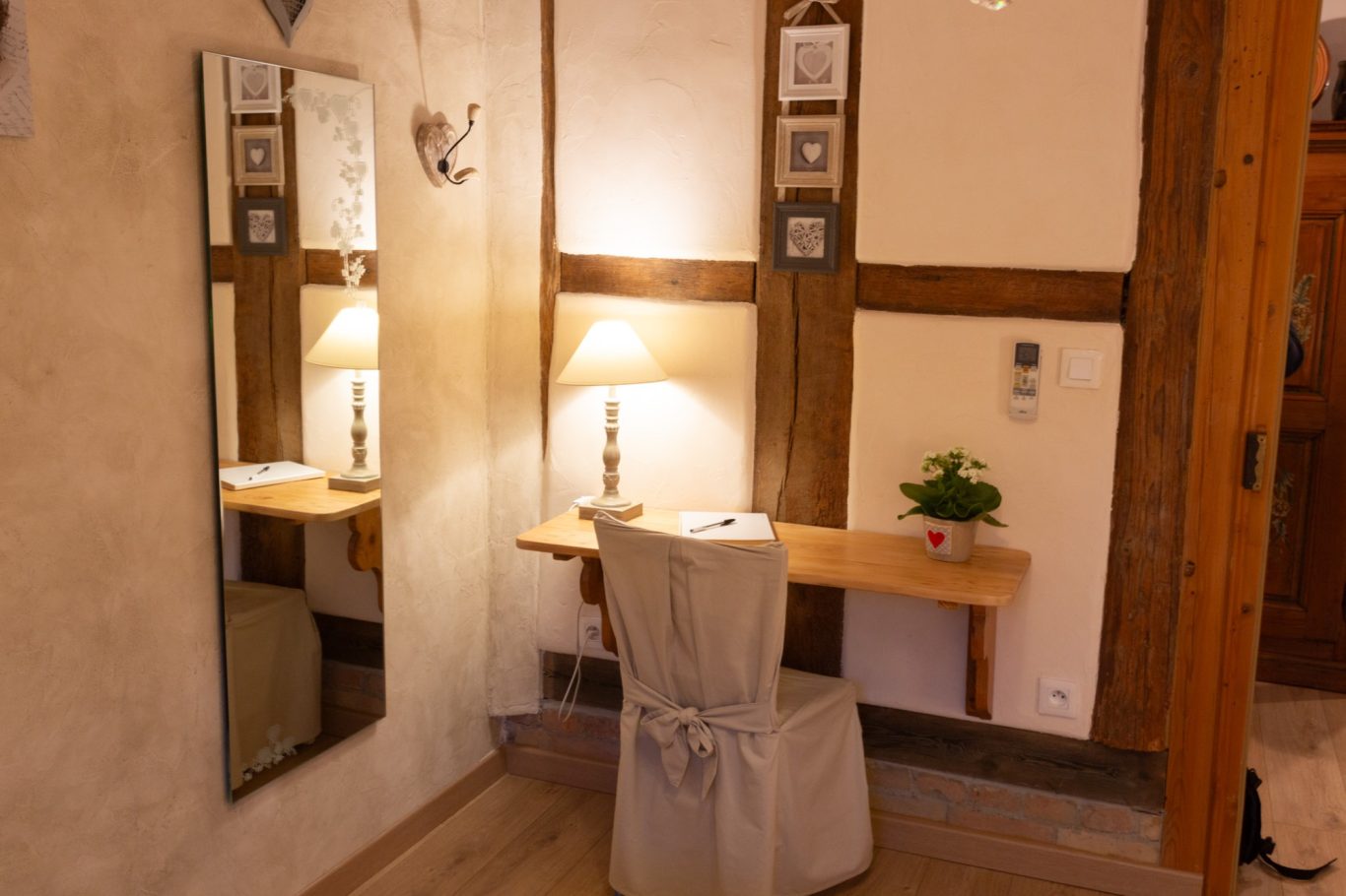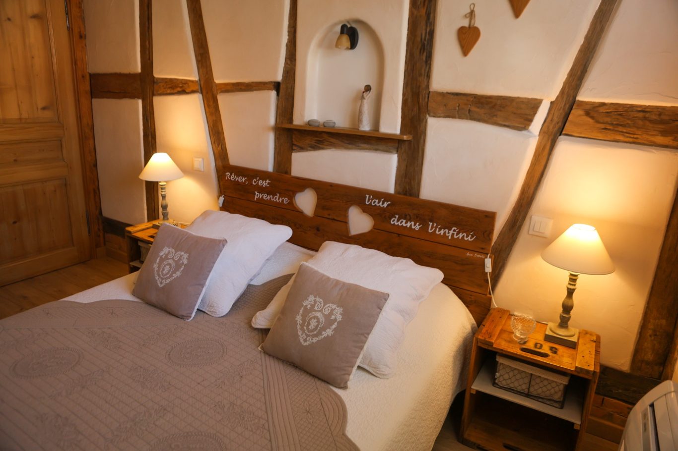 Aménagé sur 2 niveaux dans une dépendance, l’Alcôve des p’tits cœurs sera le point de départ idéal pour découvrir notre belle région. Notre plaisir sera de vous accueillir pour un séjour en toute quiétude que vous pourrez agrémenter à votre rythme de sorties, de visites, de découvertes.