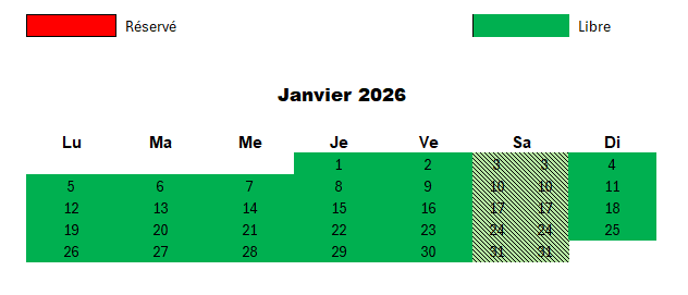Nous proposons également des courts séjours de 3 jours minimum à partir de 350,- € (ménage inclus) durant la période de mars à juin inclus et de septembre à novembre inclus. N'hésitez pas à nous contacter.