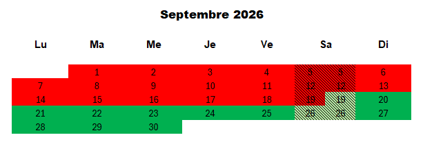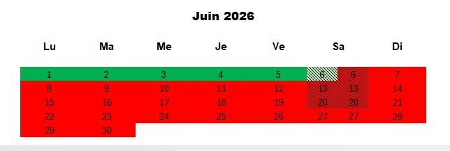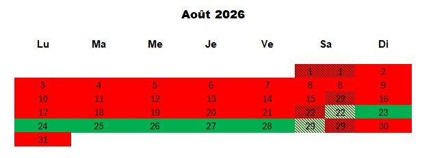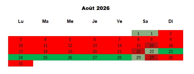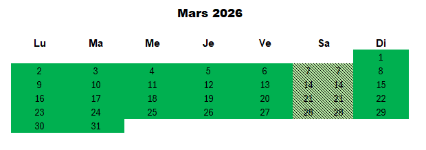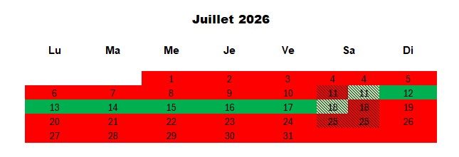 Tarif de la semaine du samedi au samedi